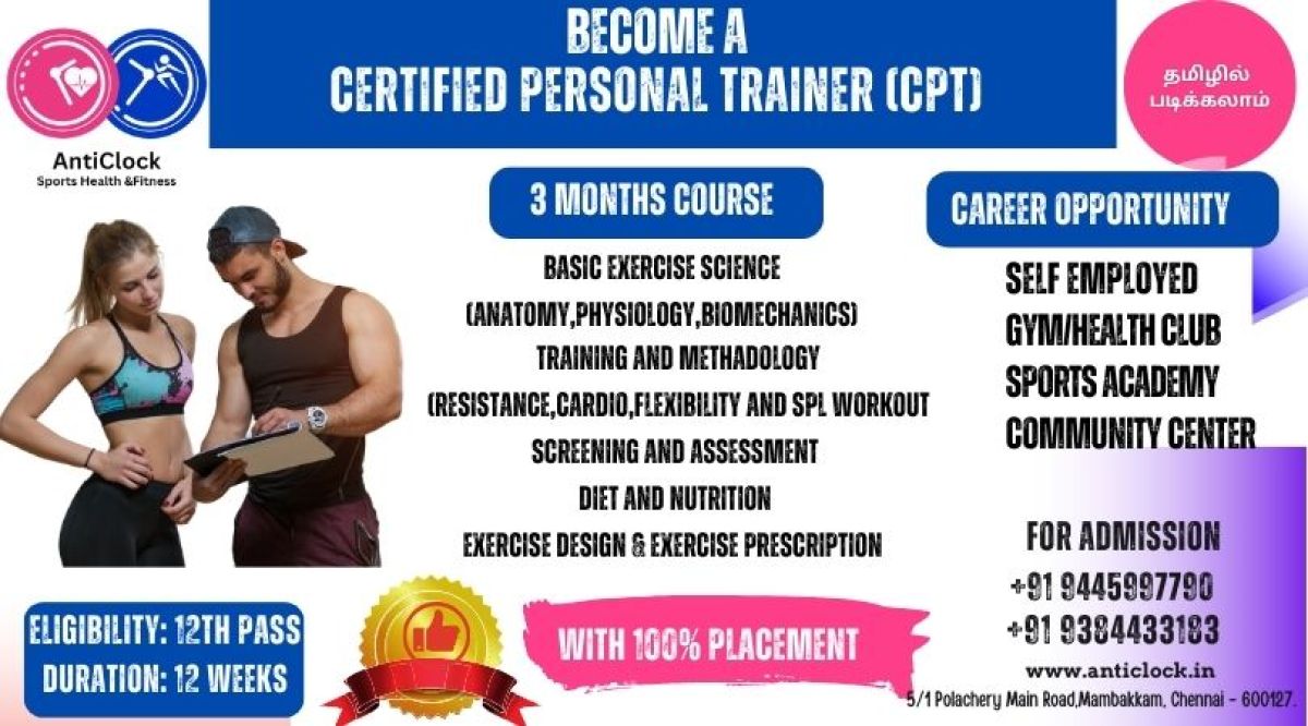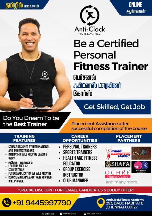 It was a very good Experience in Anticlock Fitness Academy, as I gained lot of knowledge though the staff teachings &,.all staff we're very cm good to me & they we're eager to teach me whenever I had doubts &,I was taught well, & also other non teaching staff was very good to me by informing me with necessary information about the class lessons & practical schedules &,also the students,all we're friendly to me, especially I thank sathish Sir for his excellent teachings & I also thank Madam Divya for her excellent teachings in practicals.